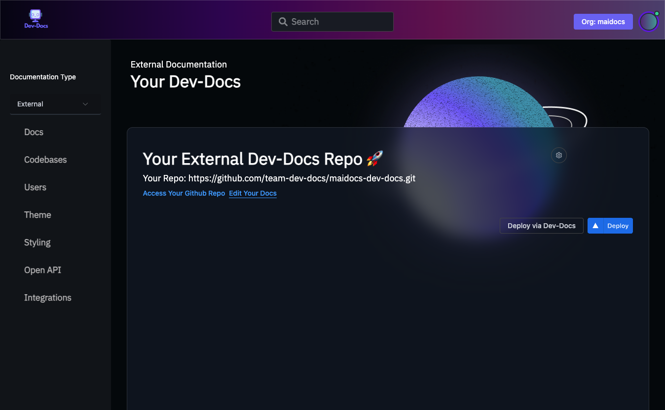 Also a new tab should open that shows your running Dev-Docs repo like below.